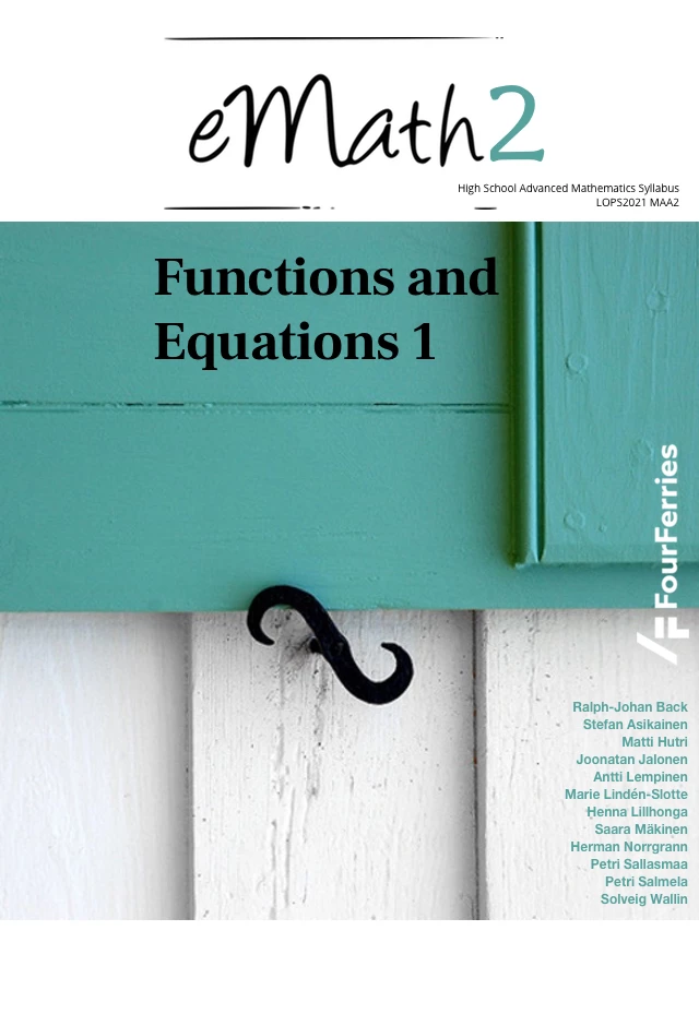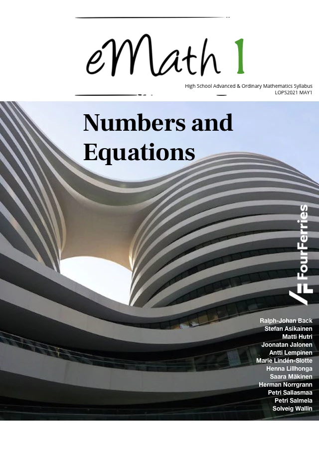 In eMath1, students can review the principles of percentage calculation, learn to use proportionality in problem solving, deepen their understanding of fractions, and revise the rules for exponents. In addition, students can strengthen their understanding of the concept of functions and the principles of solving equations and systems of equations. The book also introduces students to different software tools for plotting function graphs, making interpretations, and solving equations.