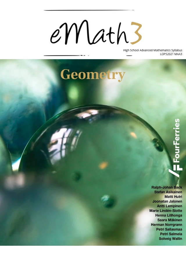 In eMath3, students practice representing and describing information about space and shapes in both two- and three-dimensional situations. They learn to apply similarity, the Pythagorean theorem, and trigonometry in right-angled and oblique-angled triangles. Students also practice formulating, justifying, and applying theorems that contain geometric information. The book further introduces students to the use of software tools for exploring figures and solids, as well as the geometry related to them.