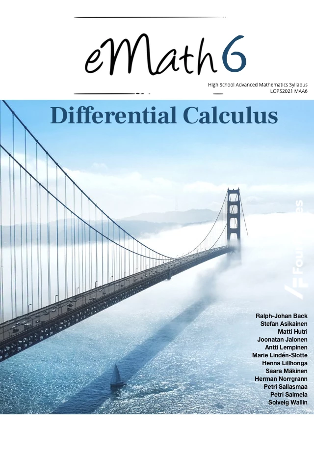 In eMath6, students explore the properties of mathematical models of various phenomena through the concept of the derivative. The book helps students build a clear understanding of a function’s limit and continuity, as well as the interpretation of the derivative as the rate of change of a function. Students learn how to determine the derivative of simple functions, differentiate composite functions, and use derivatives to analyze the behavior of functions and find their extreme values within a closed interval. The book also introduces students to the use of software tools for exploring limits, continuity, and derivatives in connection with applications.