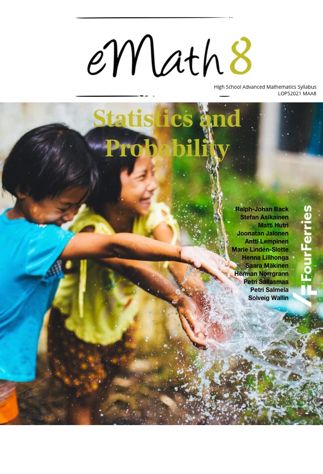 In eMath8, students learn how to represent a discrete statistical distribution and determine and interpret its key figures. They also learn to visualize a distribution involving two variables and to calculate the correlation coefficient and regression curve. Students are introduced to combinatorial methods and become familiar with the concept of probability. In addition, they explore the concept of a discrete probability distribution, learn how to determine its expected value, and interpret its meaning.