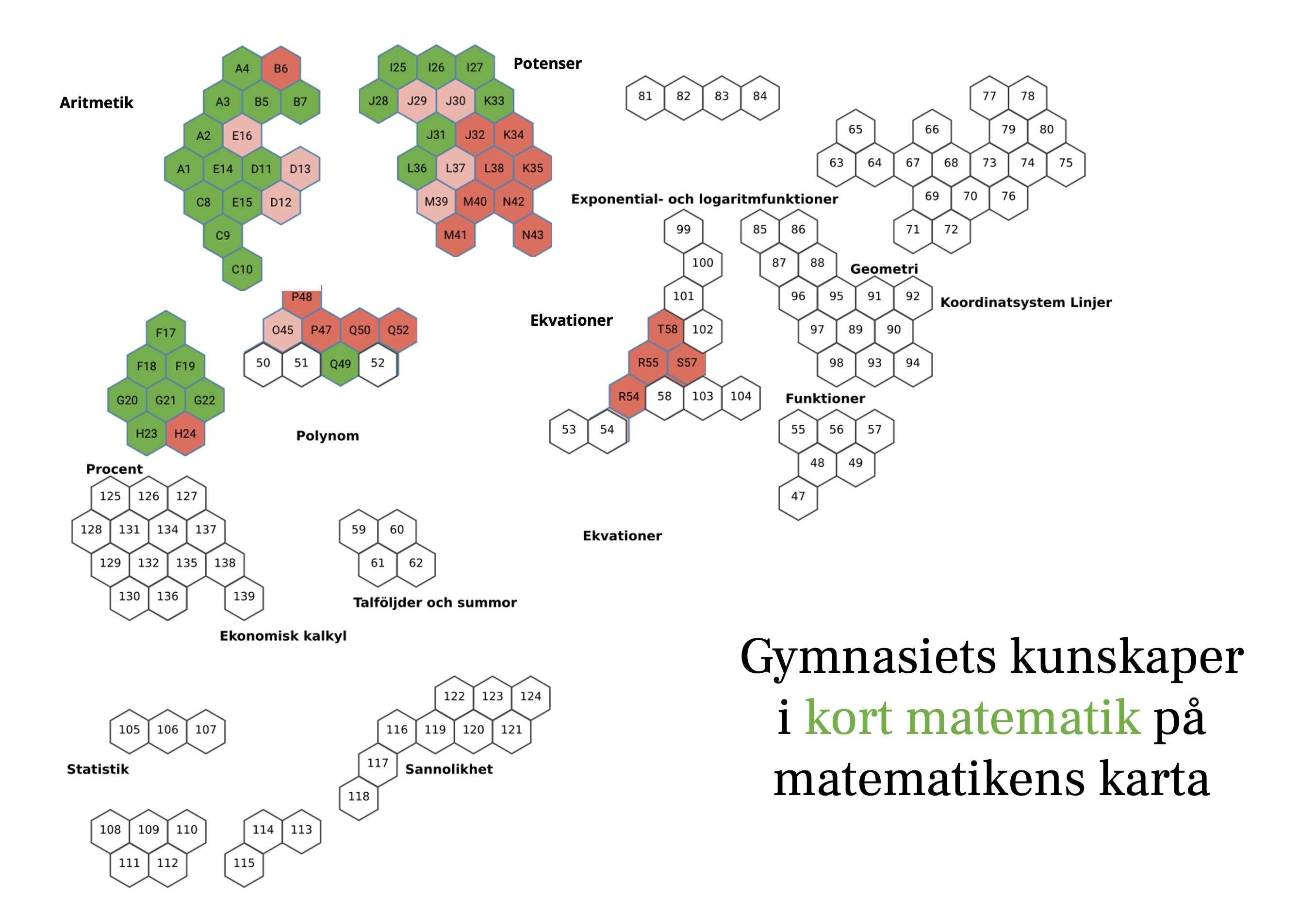 Kartläggningar har nu skapats för flera moduler inom både kort och lång matematik, bland annat MAG1, MAB2, MAA2 samt MAB3–MAB7. Resultaten visualiseras i matematikens kunskapskarta, där lärare och studerande enkelt kan se vilka områden som är starka och vilka som behöver stärkas. Lärare kan bekanta sig med uppgifterna genom att logga in på eMathStudio och öppna Gymnasiets kartläggning för kort matematik.